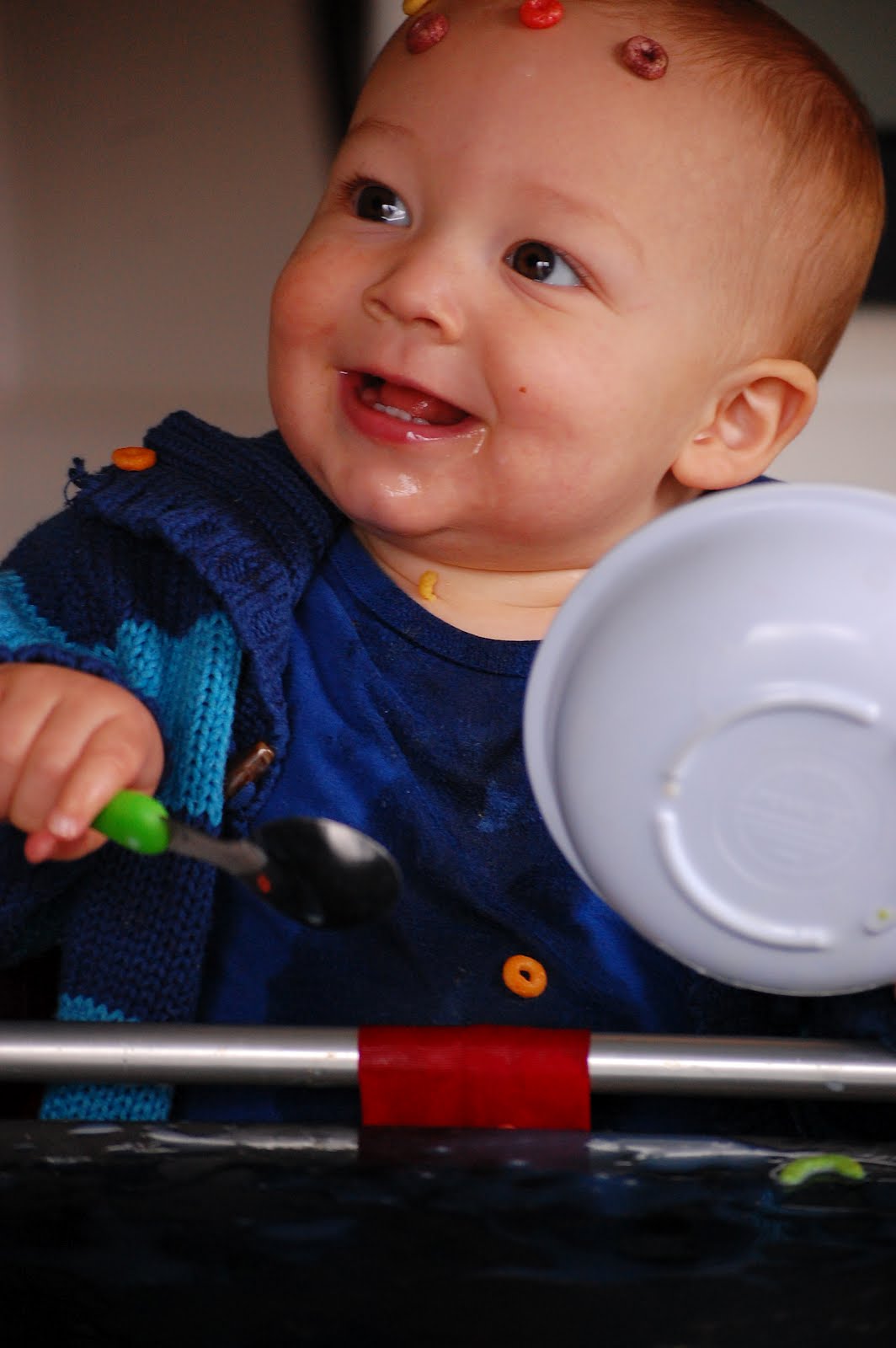 He's starting making that goofy face, just like his brother did at one year old, whenever he is happy or excited or just being silly.